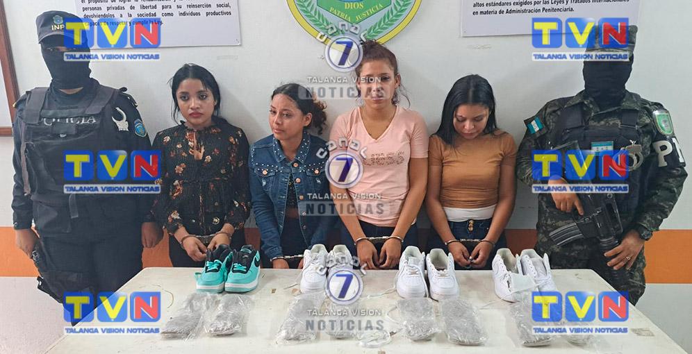 Cuatro mujeres fueron detenidas hoy domingo, por la Policía Militar del Orden Público (PMOP) y del Instituto Nacional Penitenciario (INP), cuando intentaban ingresar drogas escondidas en cuatro pares de tenis al Centro Penal de Támara, en el Distrito Central, que desarrollaba la jornada de visitas a los reos.