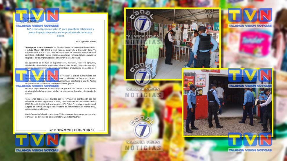 El Ministerio Público (MP) informó que se desarrolla a nivel nacional la Operación Salus VI con la que se pretenden una serie de inspecciones en los comercios para garantizar la estabilidad y evitar practicas abusivas en los 30 productos que componen la canasta básica.