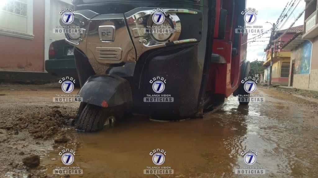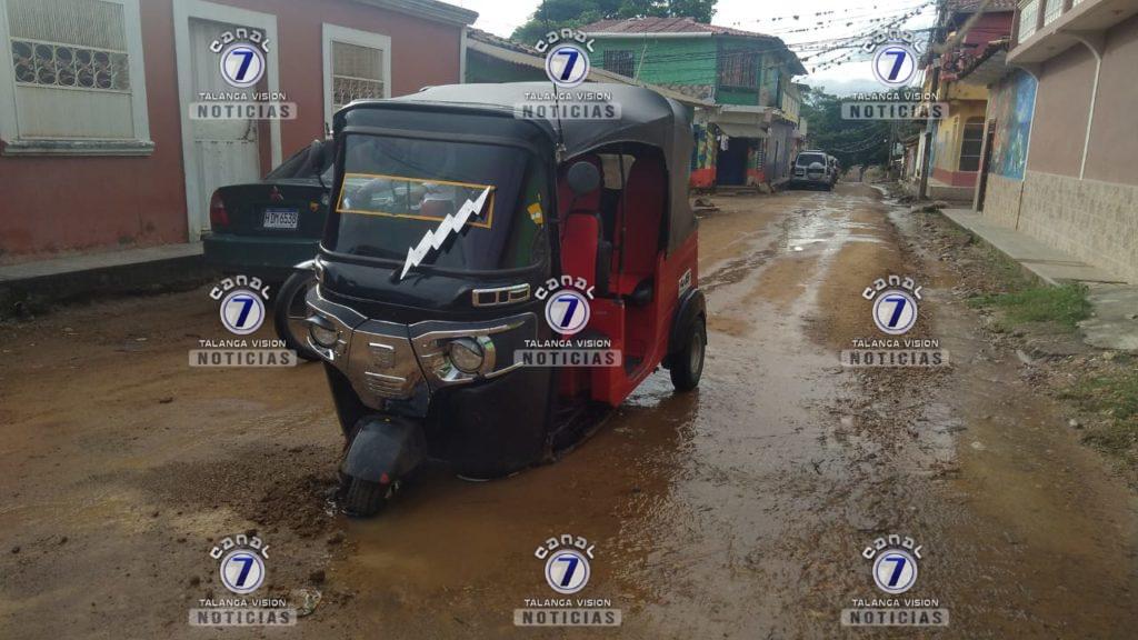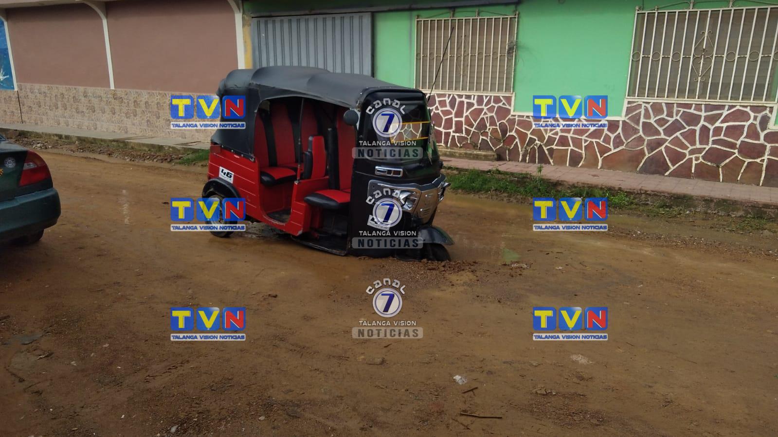 El conductor de la mototaxi número 46 sufrió una lección en la cabeza luego de que su vehículo tipo motocicleta quedará varado en un agujero.